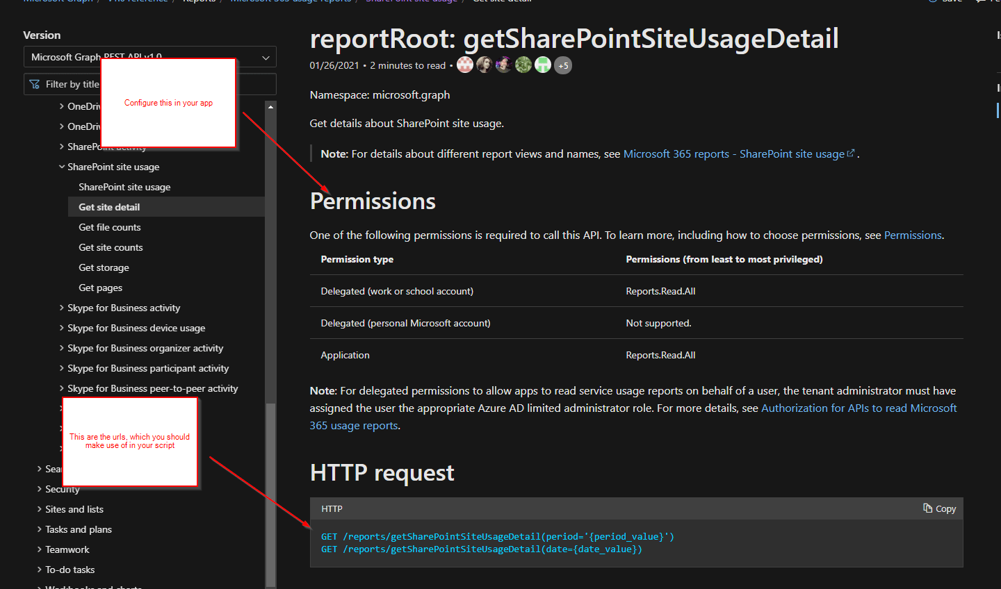 reportRoot: getSharePointSiteUsageDetail – Microsoft Graph v1.0 | Microsoft Docs