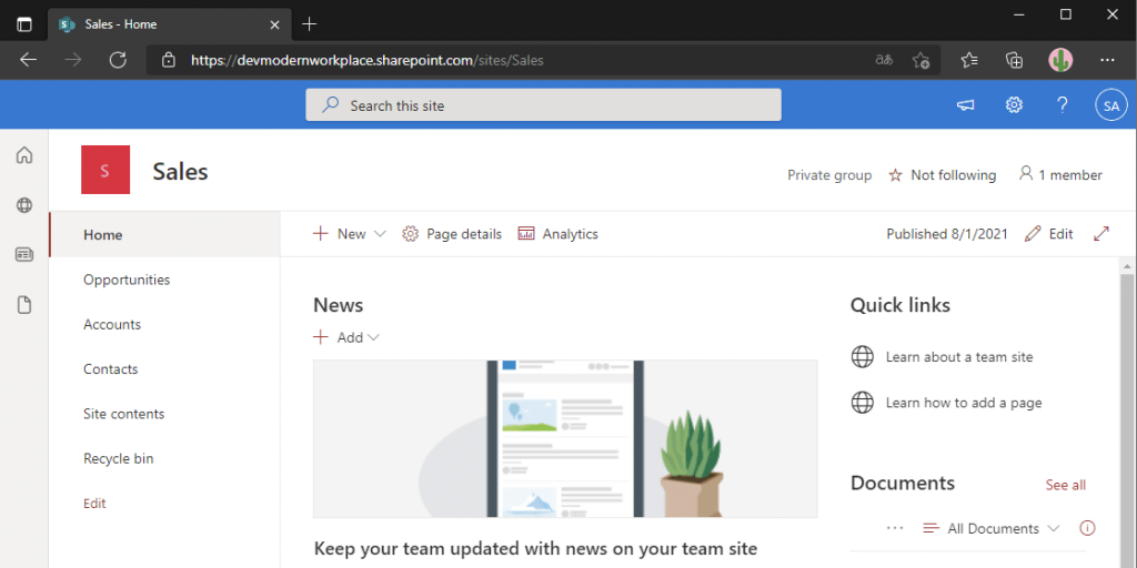 As one can see, the logo is displayed with the initials of the SharePoint site: