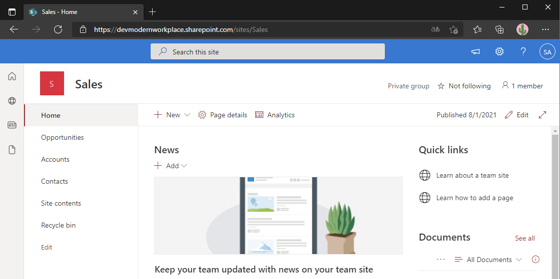 $Url = "https://devmodernworkplace.sharepoint.com/sites/Sales" $Credential = Get-Credential Connect-PnPOnline -Url $Url -Credentials $Credential