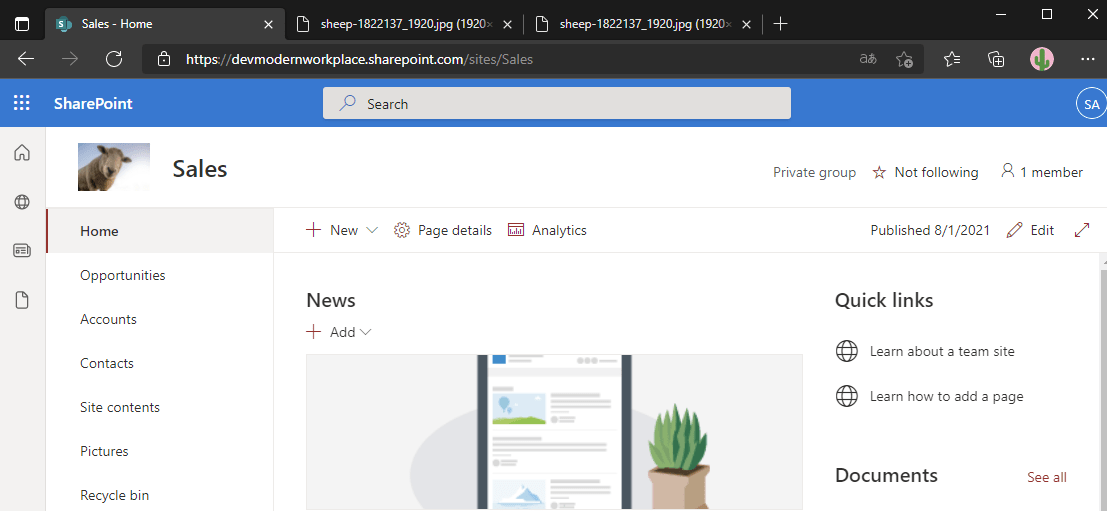 As one can see, the logo is displayed with the initials of the SharePoint site:
