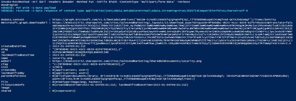 VERBOSE: received -1-byte response of content type application/json;odata.metadata=minimal;odata.streaming=true;IEEE754Compatible=false;charset=utf-8