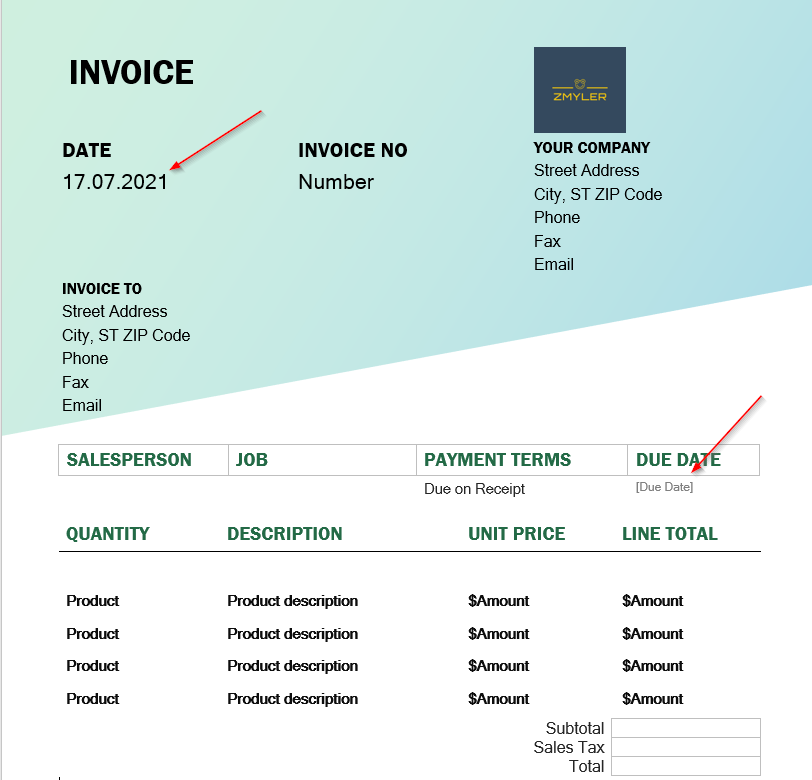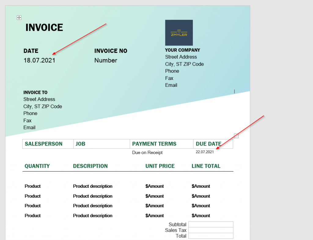 I have added invoice date and due date