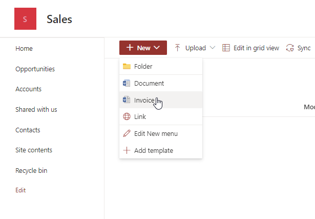 Before we start to use templates in SharePoint, we have to define a template. For our invoice, I took a template of Microsoft.