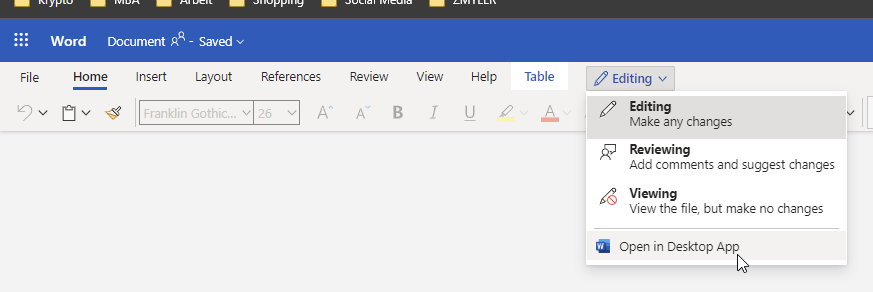 Click on editing -> Open in the Desktop App