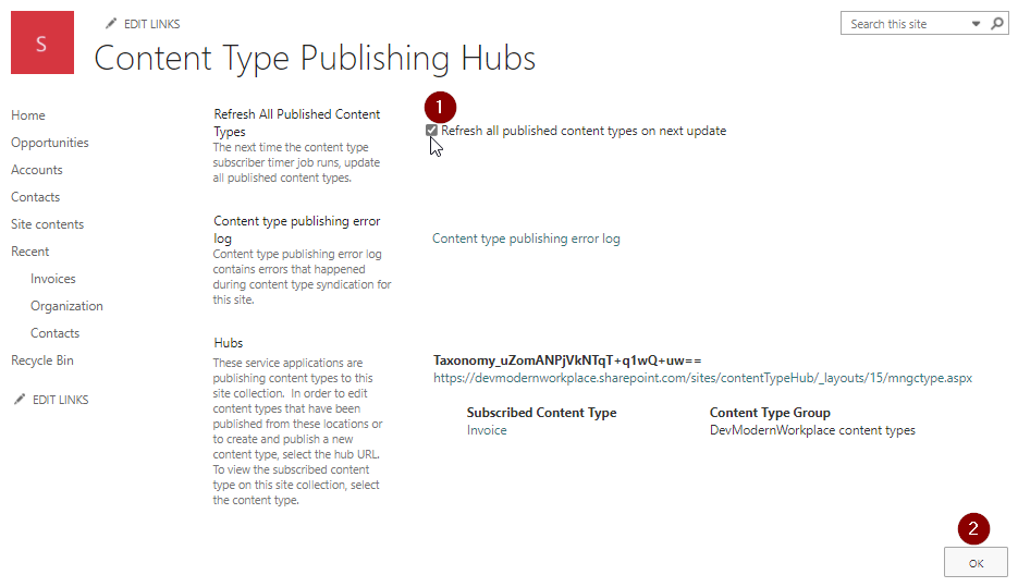 Create content type in SharePoint Admin Center