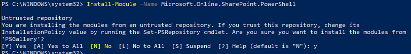 PS C:\Users\Serkar> Install-Module -Name Microsoft.Online.SharePoint.PowerShell